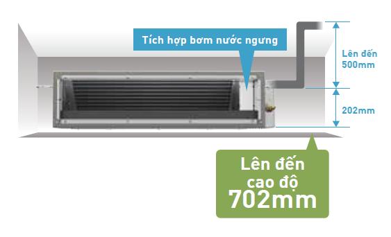 Tích hợp bơm nước ngưng cho phép lắp đặt linh hoạt và phù hợp với nội thất bất kỳ phòng nào