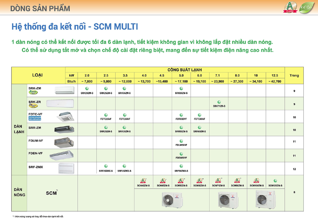 Tất cả sản phẩm sử dụng gas R410A với hệ số ảnh hương cho tầng khí quyển bằng 0.