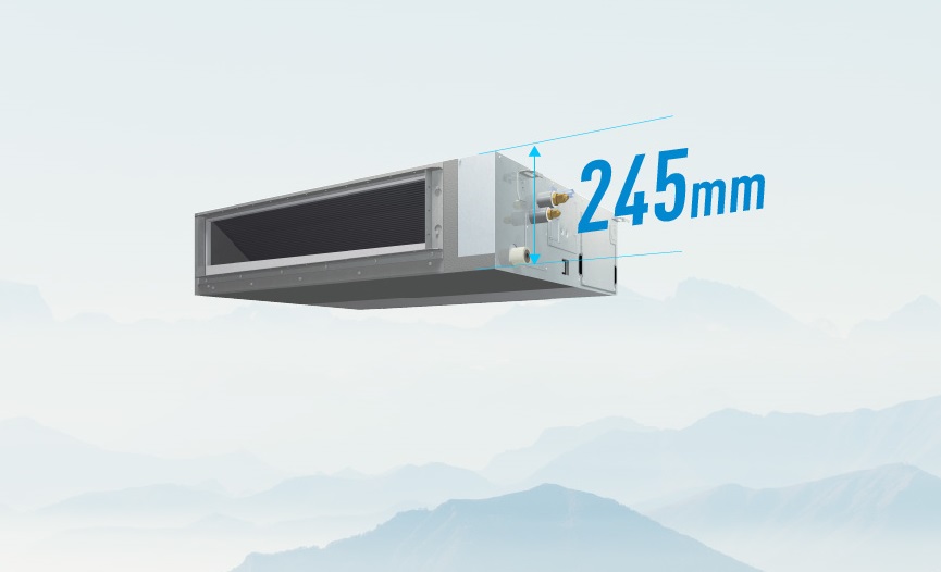 Với chiều cao chỉ 245 mm, kiểu dàn lạnh có thể lắp đặt ở nhưng tòa nhà có không gian trần hẹp.