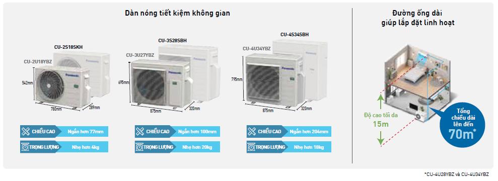 Hệ thống điều hòa Multi-Split Panasonic được thiết kế tăng cường khả năng làm lạnh đáp ứng cho không gian rộng. Sử dụng công nghệ biến tần và môi chất lạnh gas R32 nhằm mang lại hiệu quả tiết kiệm năng lượng cao. Dàn nóng kết nối linh hoạt lên đến 4 dàn lạnh với công suất tối đa 11.50kW. Được trang bị đầy đủ gas để lắp đặt dễ dàng và bền bỉ hơn khi hoạt động ngoài trời. Thiết kế nhỏ gọn và đường ống dài giúp các dàn lạnh được lắp đặt linh hoạt hơn.