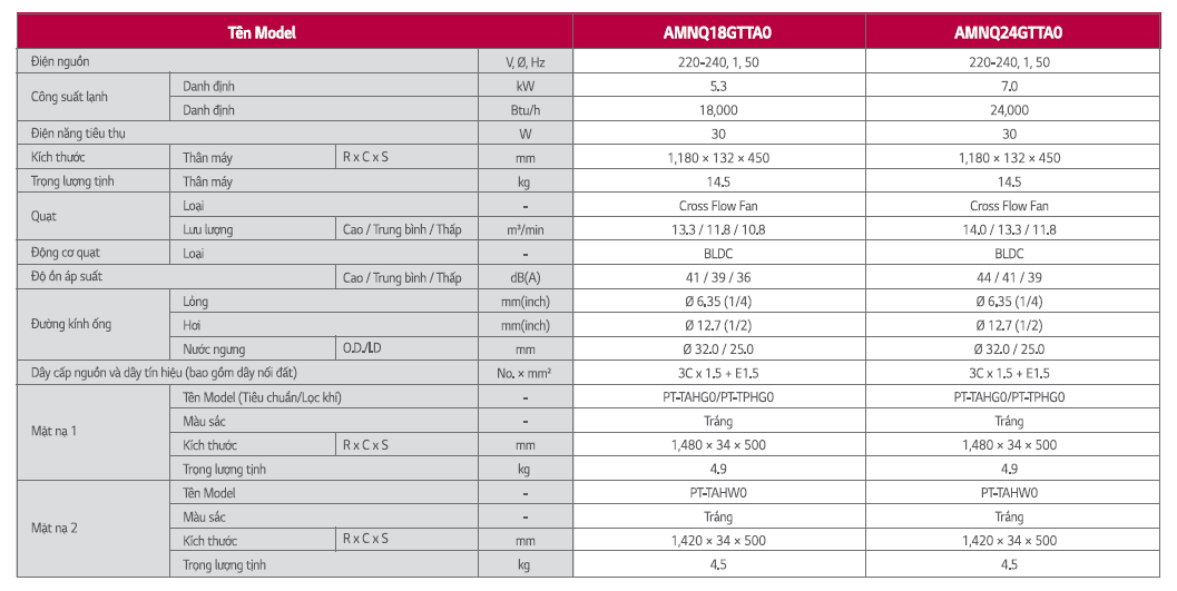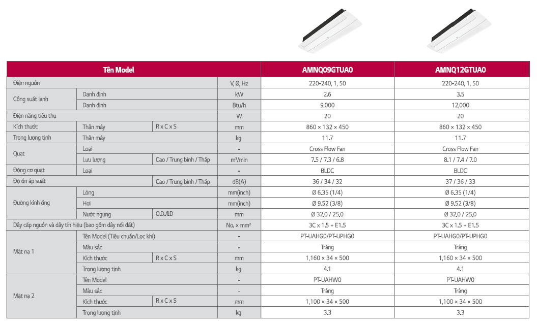 THÔNG SỐ KỸ THUẬT DÀN LẠNH CASSETTE 1 HƯỚNG THỔI LG MULTI SPLIT INVERTER
