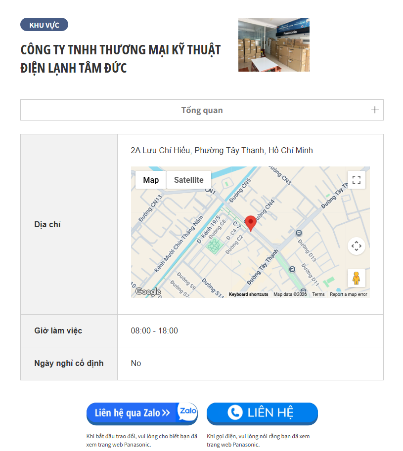 Liên lạc với chúng tôi qua mục Đối tác trên Website chính chủ Panasonic hoặc theo thông tin dưới đây