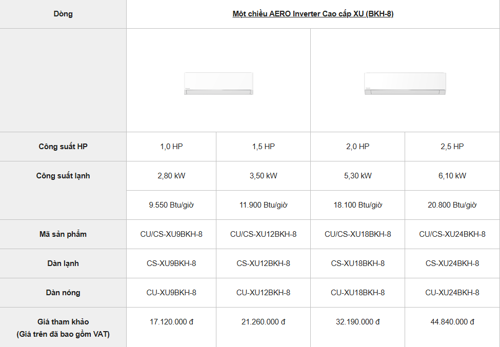 Thông số dòng cao cấp Panasonic XU (BKH-8) ra mắt 2025 - Nguồn : Panasonic Việt Nam