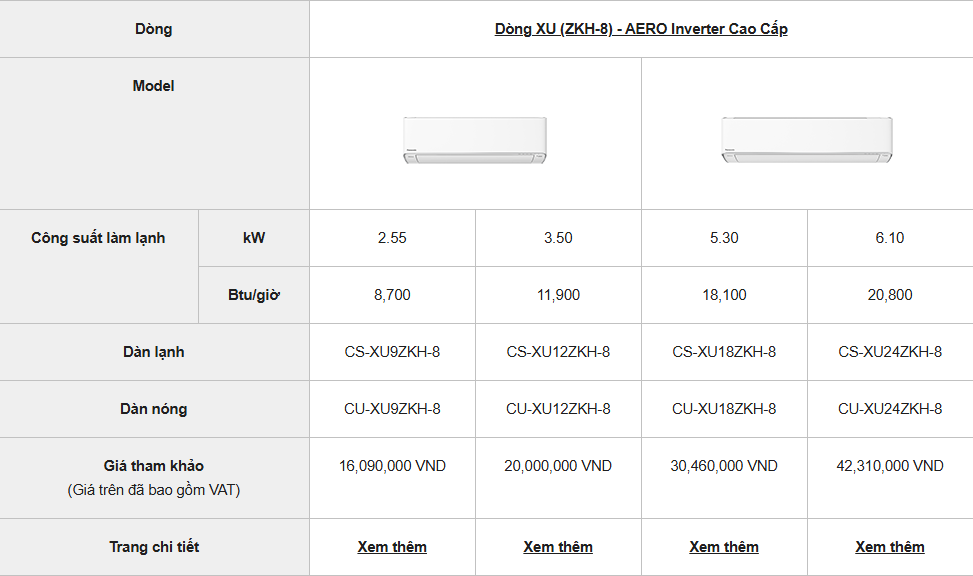 Thông số XU ( ZKH-8 ) ra mắt 2023 - Nguồn : Panasonic Việt Nam