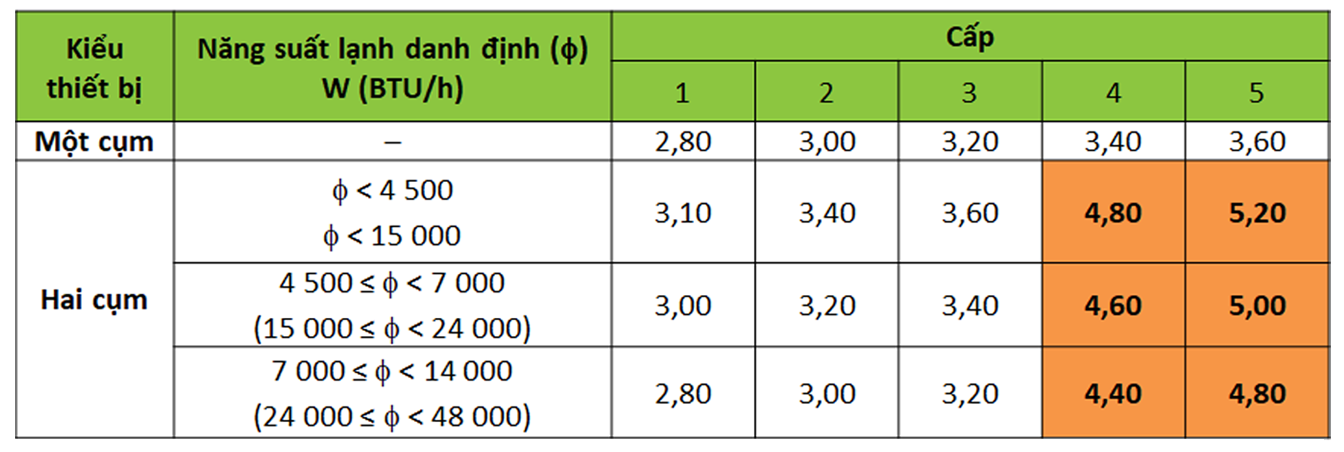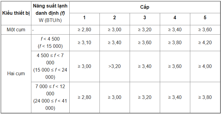 Hiện nay tiêu chuẩn hiệu suất năng lượng cho hệ thống điều hòa không khí mới nhất được áp dụng theo tiêu chuẩn TCVN 7830:2021 thay thế cho TCVN 7830:2015.