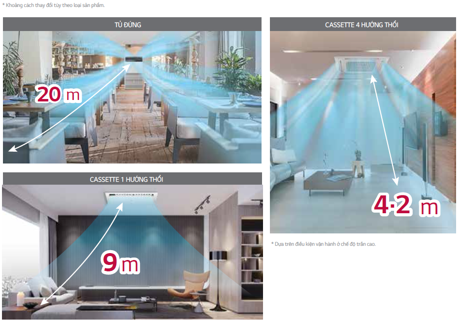 Với việc cải tiến công nghệ , quạt dàn lạnh LG cho phép thổi khí xa dàn lạnh đến 20 m.