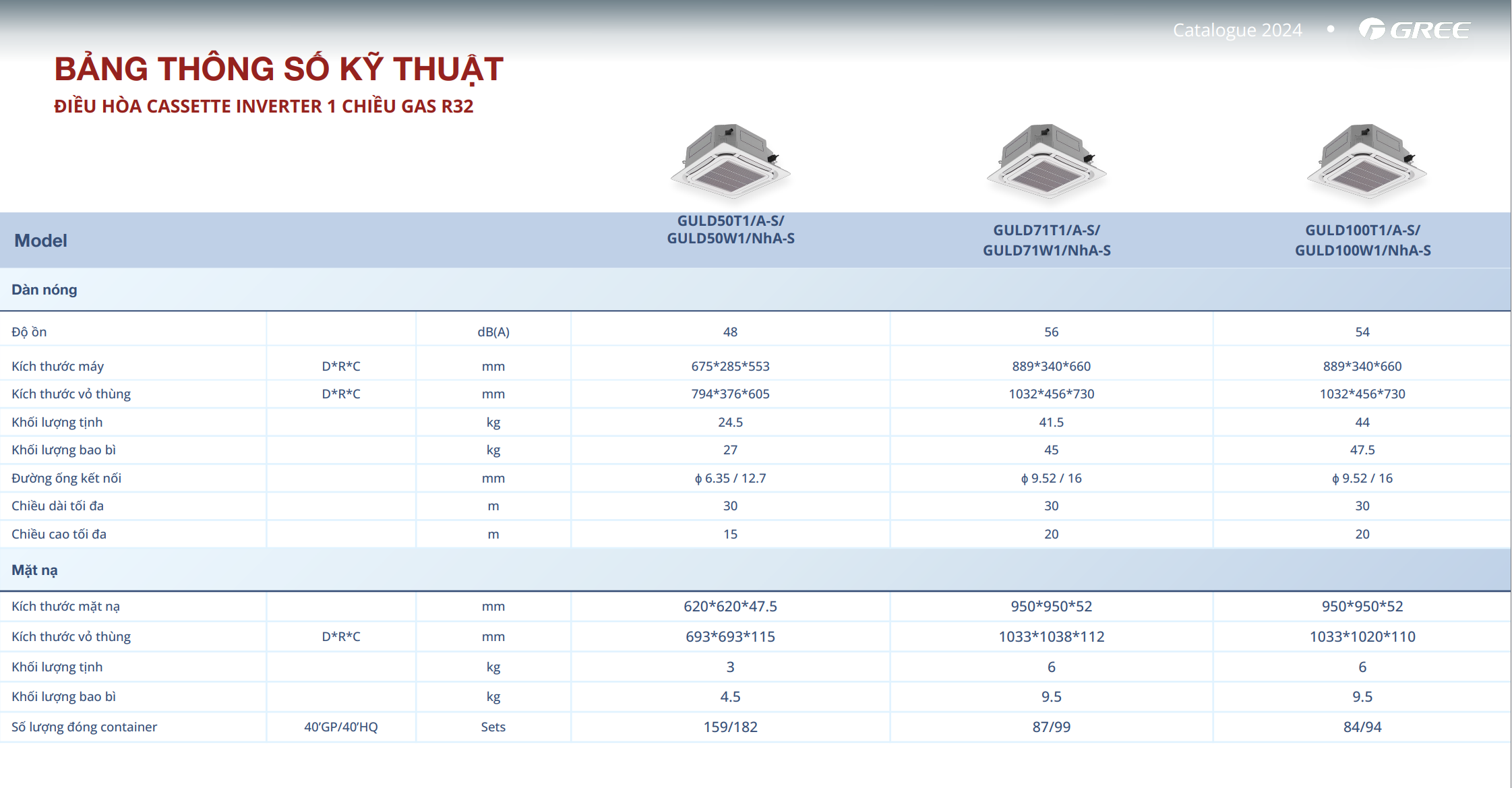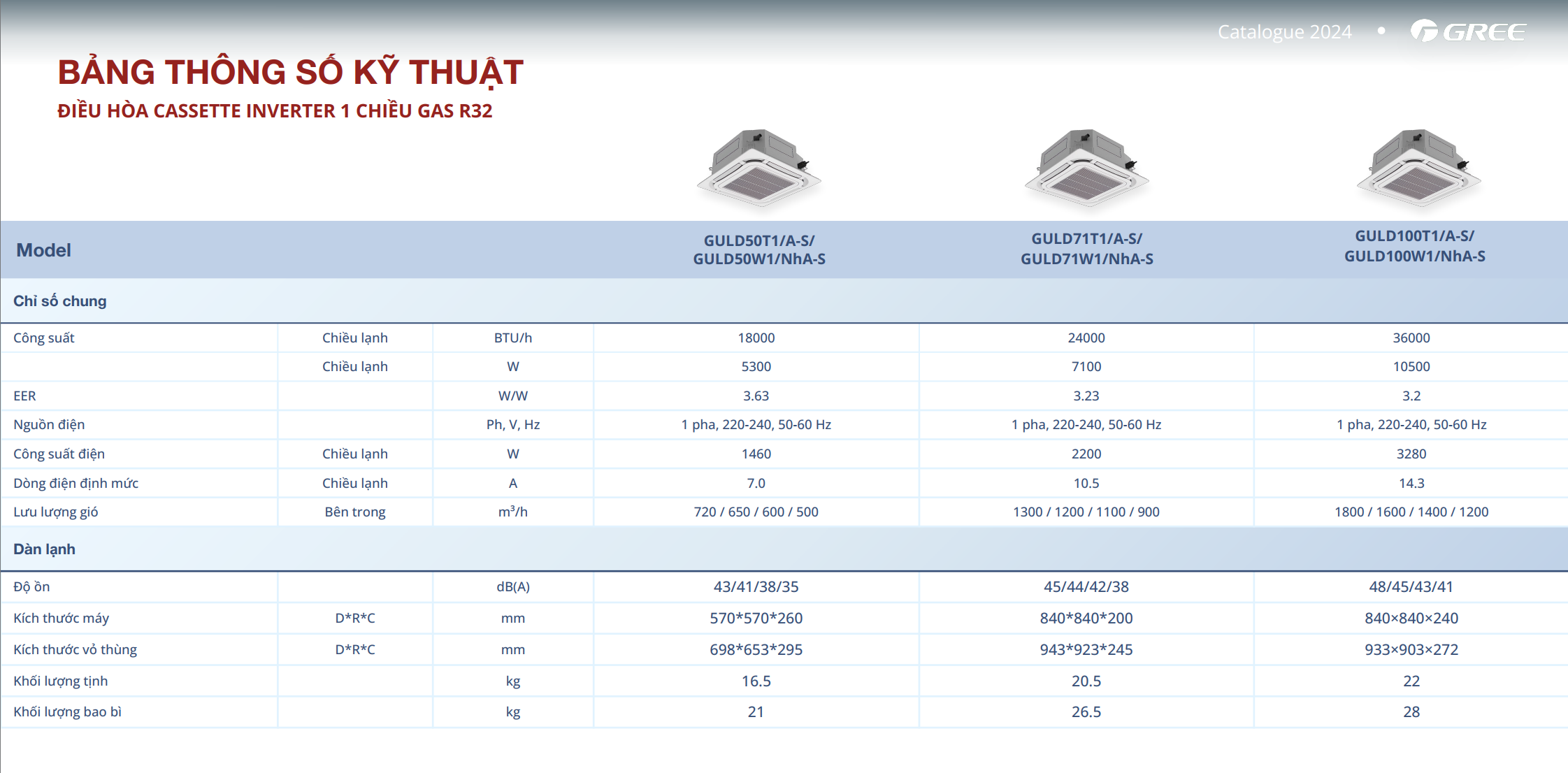 THÔNG SỐ KỸ THUẬT MÁY LẠNH ÂM TRẦN CASSETTE INVERTER