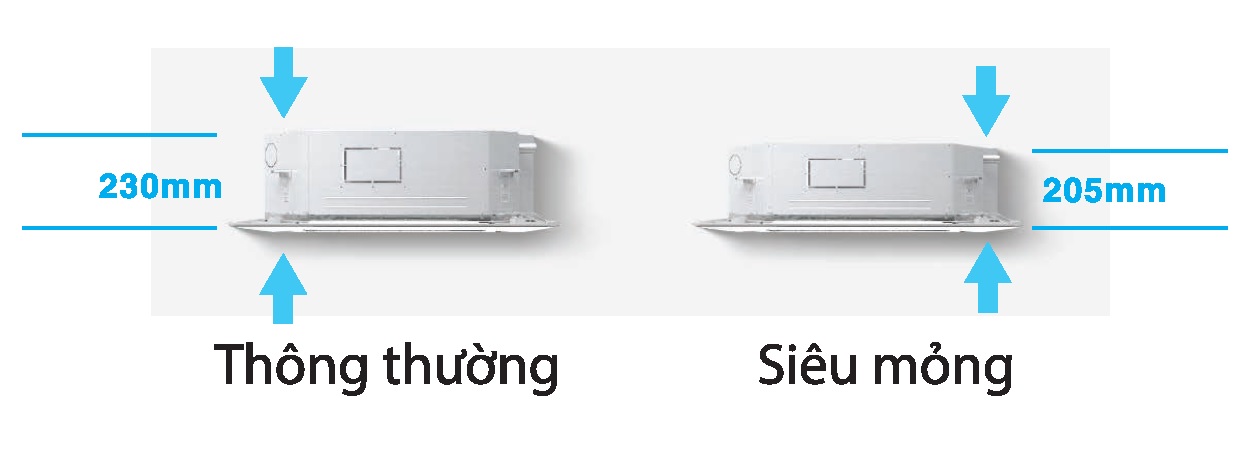 Với độ dày dàn lạnh chỉ 205mm mỏng hơn so với thông thường 230mm, chinh phục những không gian chật hẹp nhất