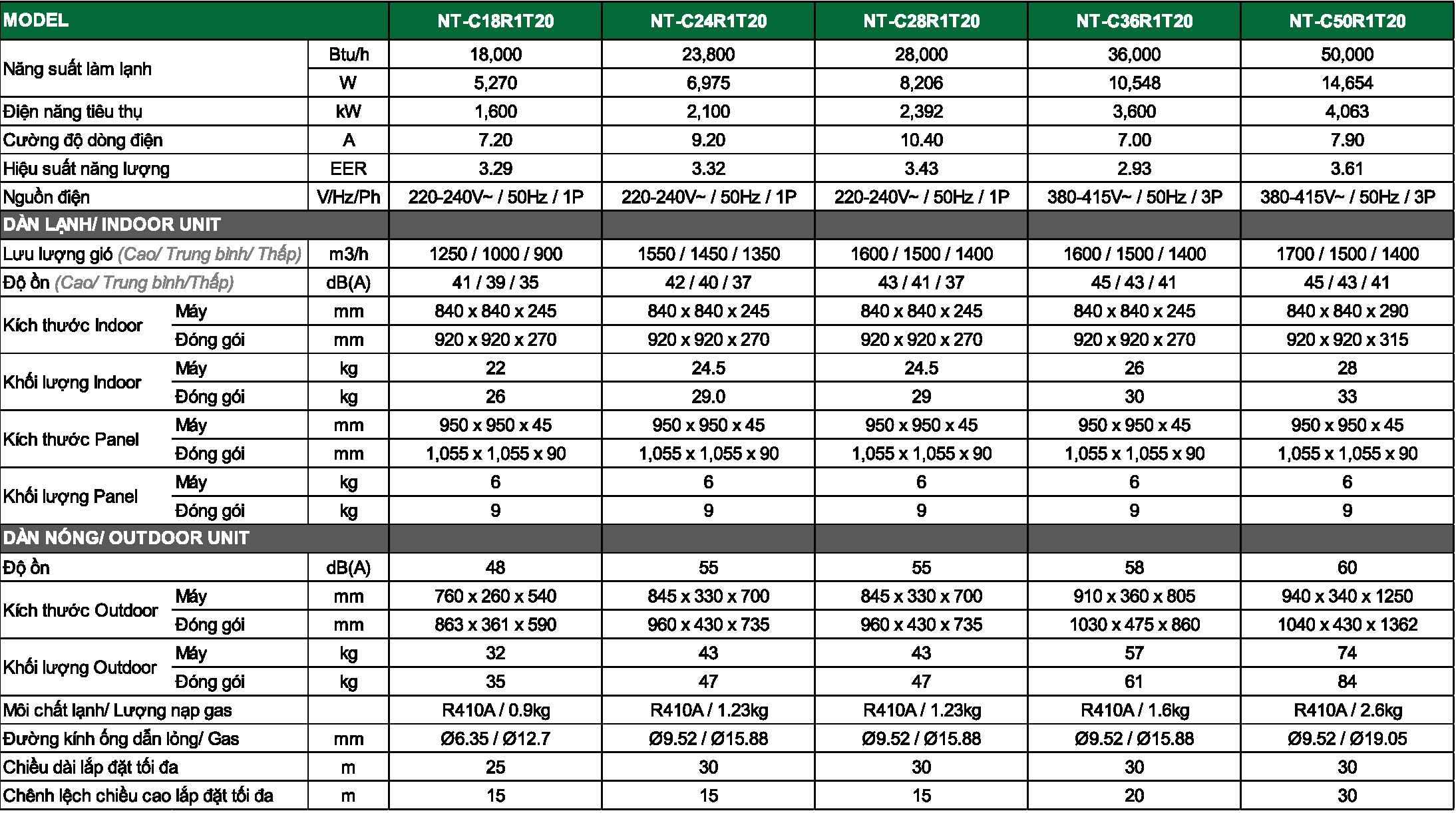MÁY LẠNH ÂM TRẦN CASSETTE NAGAKAWA T-SERIES 1 CHIỀU LẠNH
