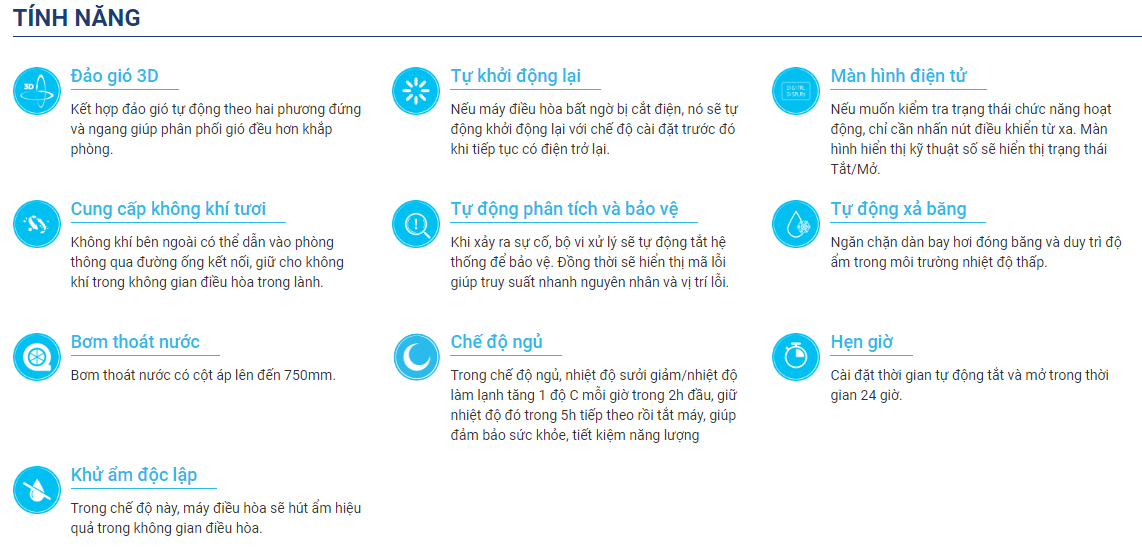 Nếu máy điều hòa bất ngờ bị cắt điện, nó sẽ tự động khởi động lại với chế độ cài đặt trước đó khi tiếp tục có điện trở lại.