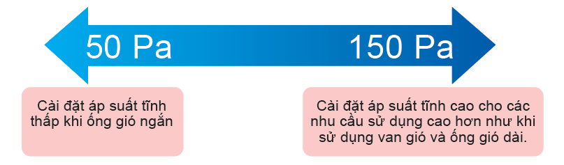 Sử dụng động cơ quạt DC có thể điều chỉnh áp suất tinh bên ngoài trong khoảng từ 50 Pa đến 150 Pa (FBFC100-140)*.
