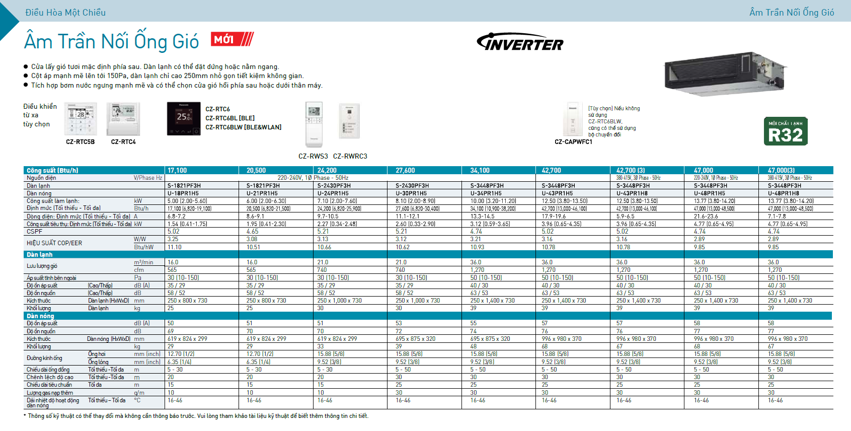 Dòng điều hòa Panasonic Inverter NX âm trần nối ống gió