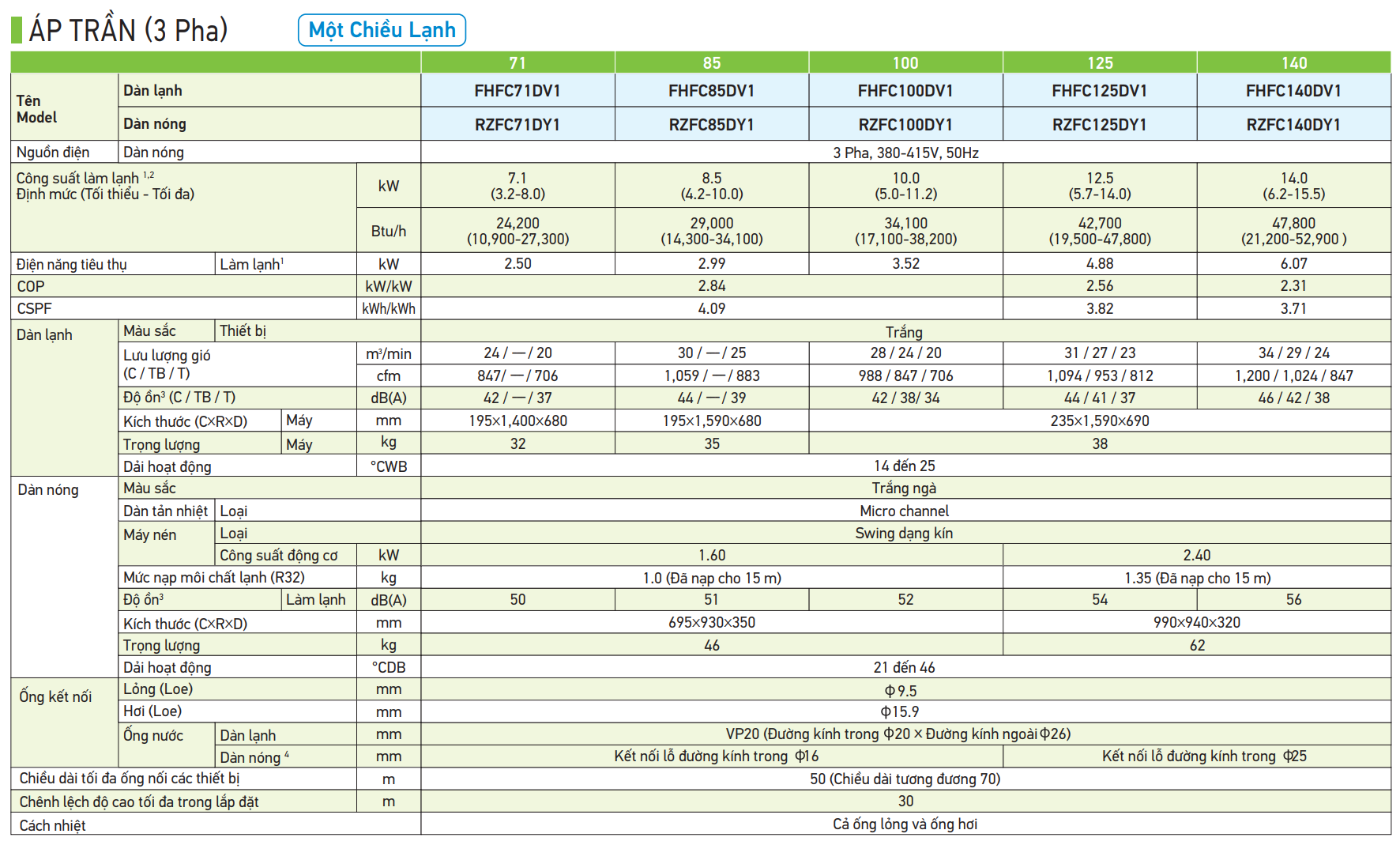 THÔNG SỐ KỸ THUẬT MÁY LẠNH ÁP TRẦN DAIKIN INVERTER FHFC140DV1/RZFC140DY1 (5.5HP)