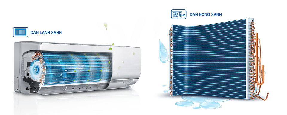 Các lá nhôm tản nhiệt ở dàn lạnh và dàn nóng được phủ lớp chống ăn mòn màu xanh, cho tuổi thọ dài lâu và góp phần tiết kiệm năng lượng.
