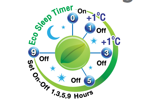 Điều khiển từ xa của Carrier có thể cài đặt giờ tắt máy một cách thuận tiện. Nó có thể lập trình theo (1-3-5-9) giờ. Trong khi đó máy sẽ tạo ra hành trình hoạt động tối ưu cho giấc ngủ của bạn. Nhiệt độ sẽ tăng 1oC sau 1 giờ và tăng tiếp 1oC sau 2 giờ hoạt động liên tiếp. Nhiệt độ này sẽ duy trì cho đến sáng.
