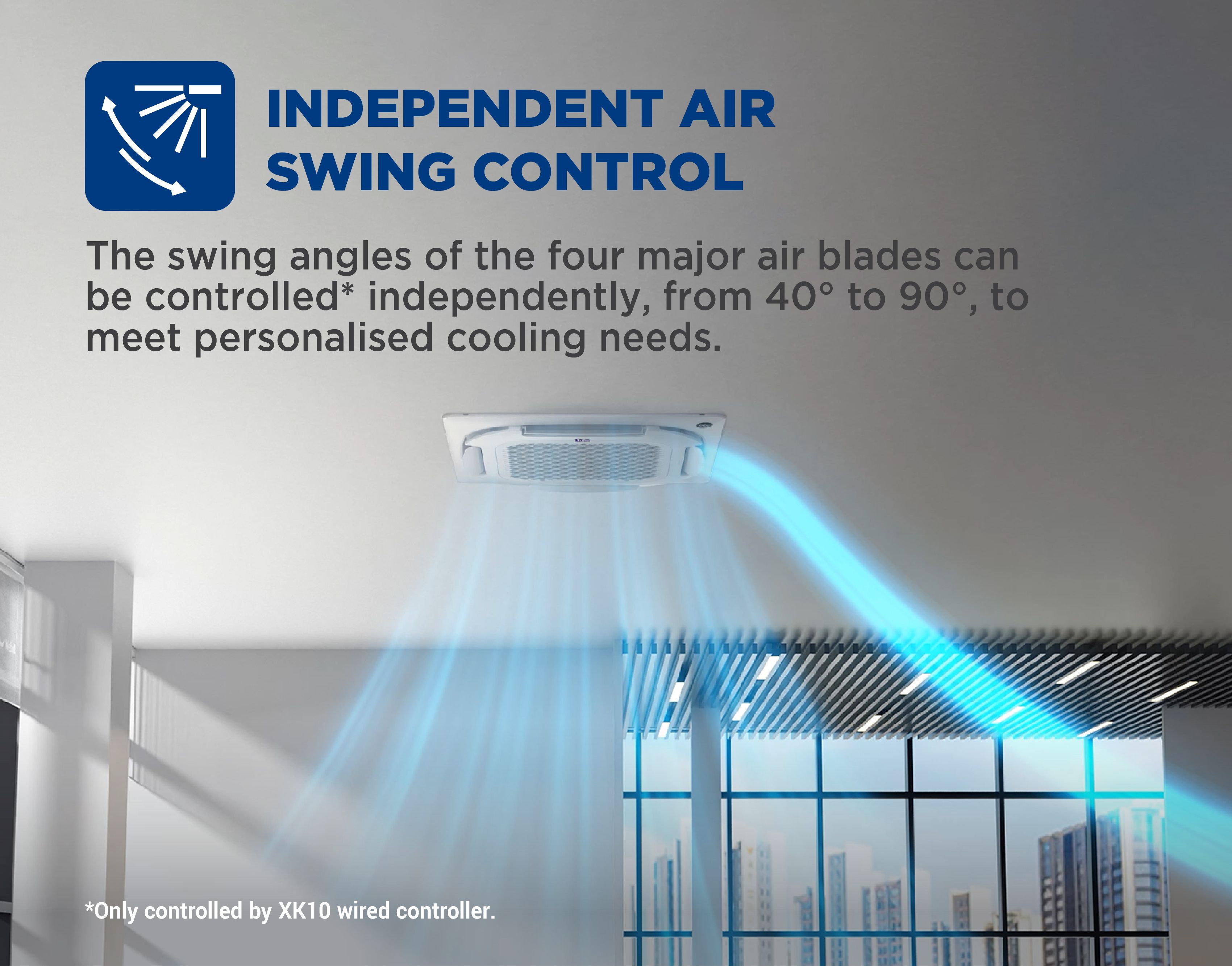 Góc đảo gió của những cách quạt chỉnh được điều khiển độc lập, từ 40 0 đến 90 0, để đáp ứng nhu cầu làm mát dạng cá nhân hóa.