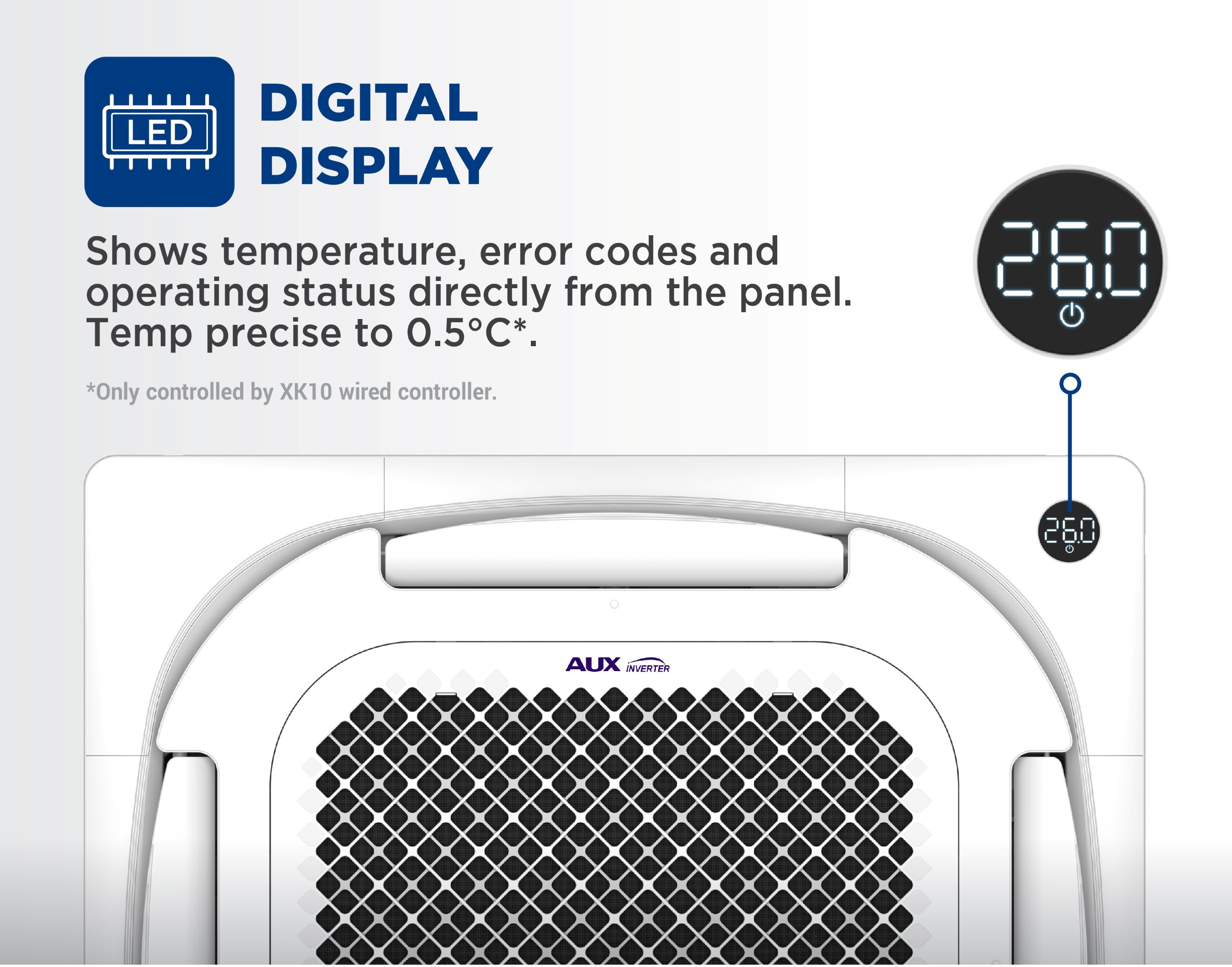 Hiển thị nhiệt độ, mã lỗi và tình trạng hoạt động trực tiếp trên bảng điều khiển. Nhiệt độ hiển thị chính xác đến 0.5 o C *.