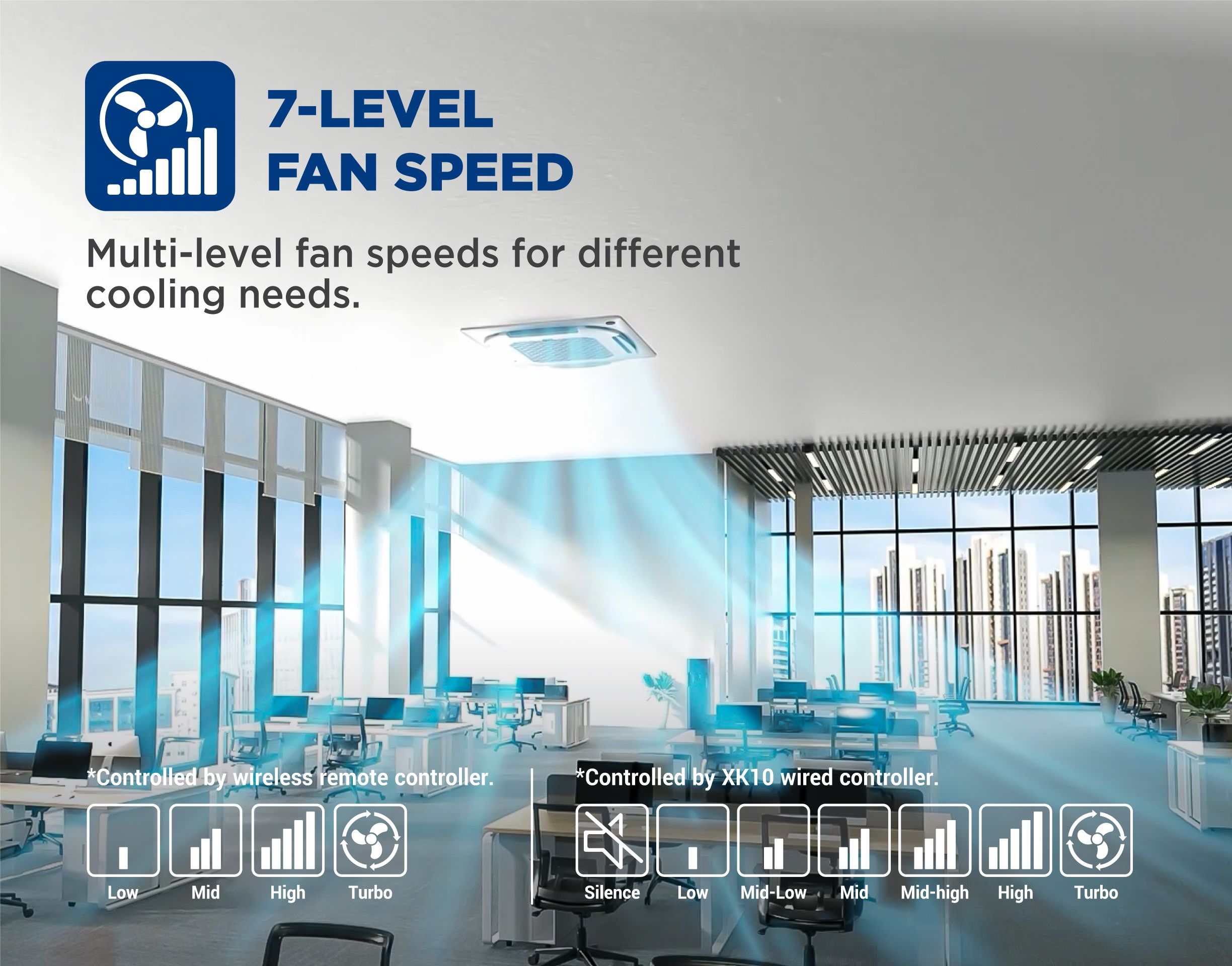 7 cấp tốc độ quạt. Tốc độ quạt đa cấp thỏa mãn các nhu cầu làm mát khác nhau.