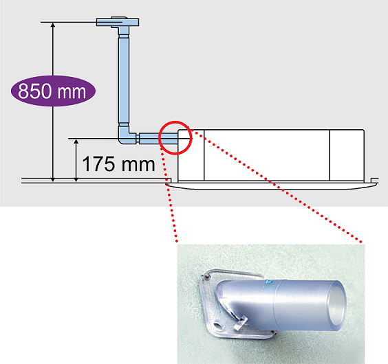 Hệ thống bơm nước xả được trang bị như phụ kiện tiêu chuẩn của máy với độ nâng 850mm