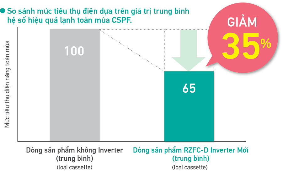 Những dòng máy sử dụng công nghệ Inverter mới của Daikin làm giảm mức tiêu thụ năng lượng trong suốt quá trình làm lạnh.