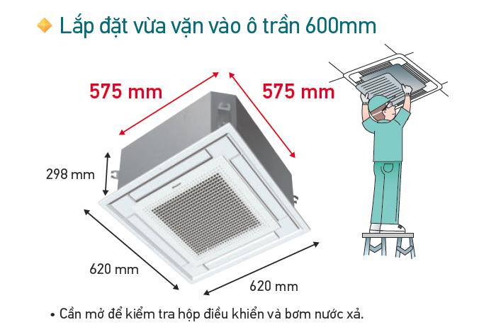 Thiết kế để lắp đặt vừa vặn vào khung trần rộng 600mm.