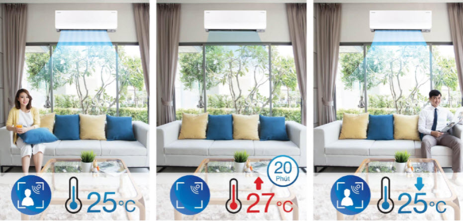Với tính năng mắt thần thông mình của Daikin, máy lạnh có thể nhận biết được chuyển động của người trong phòng thông qua cảm biến hồng ngoại ở dàn lạnh. Sau 20 phút, nếu không phát hiện được có chuyển động trong phòng, máy lạnh sẽ tự động tăng hoặc giảm nhiệt độ cài đặt khoảng 2 độ C để tiết kiệm điện.