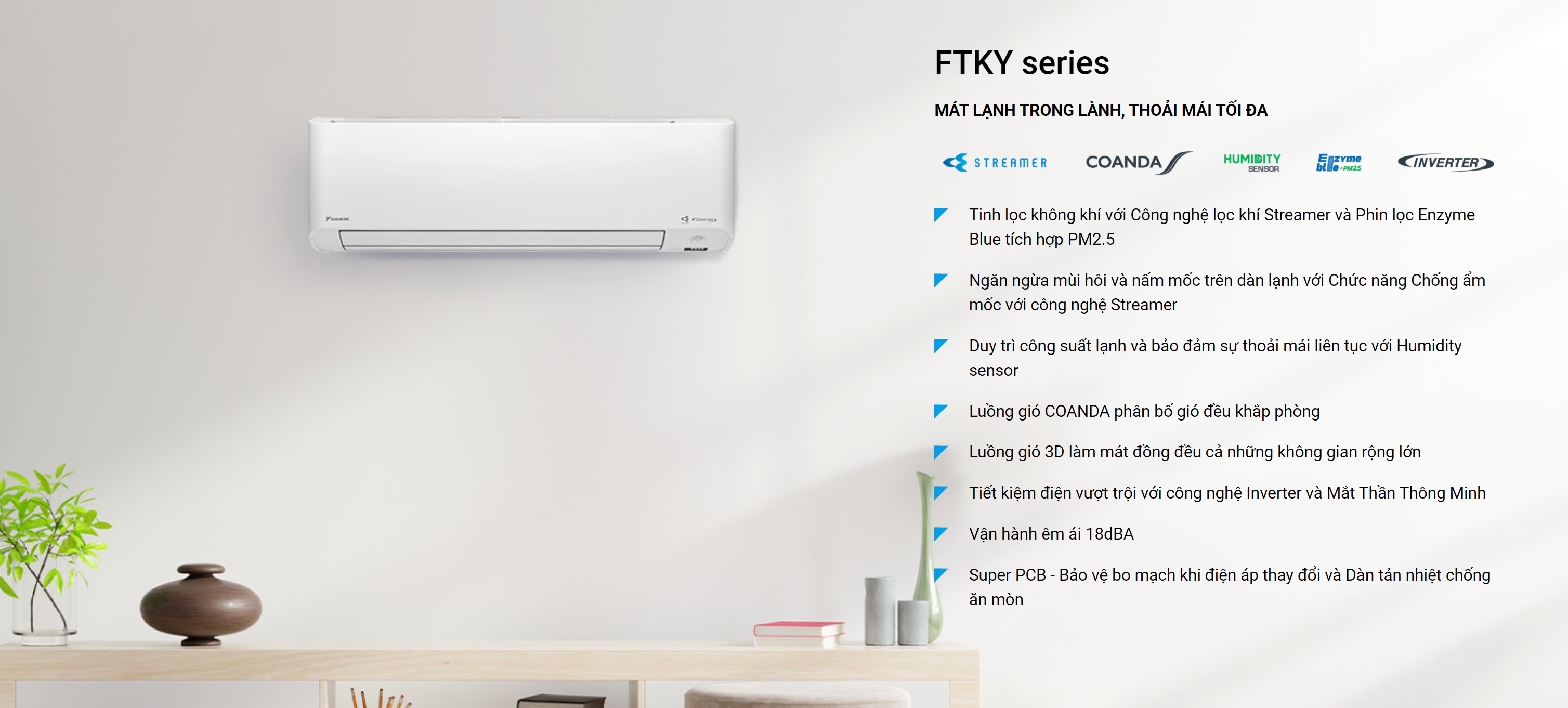 Công nghệ Streamer - Công nghệ lọc khí độc quyền DAIKIN – với cơ chế giải phóng các electron tốc độ cao va chạm với oxy, nitơ, hơi nước trong không khí giúp tạo ra các phần tử có đặc tính phân hủy mạnh mẽ, tác động ức chế các chất gây mùi, các tác nhân gây ô nhiễm như vi khuẩn, vi rút, nấm mốc, phấn hoa, mạt bụi và bụi mịn PM2.5 trong các thành phần gây dị ứng, mang lại hiệu quả thanh lọc tối ưu bầu không khí mà bạn hít thở.