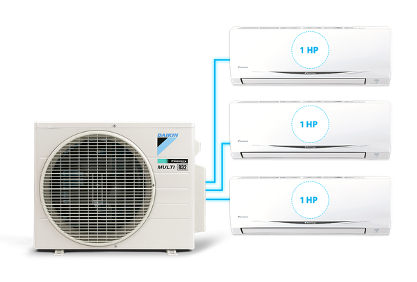 Hệ thống điều hòa không khí Multi là máy điều hòa không khí với máy nén đơn (dàn nóng đơn) có thể kết nối với nhiều dàn lạnh. Hệ thống tối ưu dành cho các loại nhà nhỏ với không gian lắp đặt dàn nóng hạn chế như chung cư, trả lại không gian ban công cho người sử dụng. Bằng cách giảm số lượng dàn nóng, hệ thống điều hòa không khí Multi cũng góp phần làm giảm độ ồn cùng với việc đi dây điện quá nhiều và nhiệt thải tích tụ gây ra hiện tượng quẩn gió cho hệ thống.