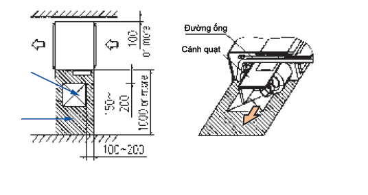 Cánh quạt và motor quạt có thể tháo ra từ mặt phải của dàn lạnh. Việc bảo trì có thể thực hiện được từ bên mặt phải hoặc phía dưới máy