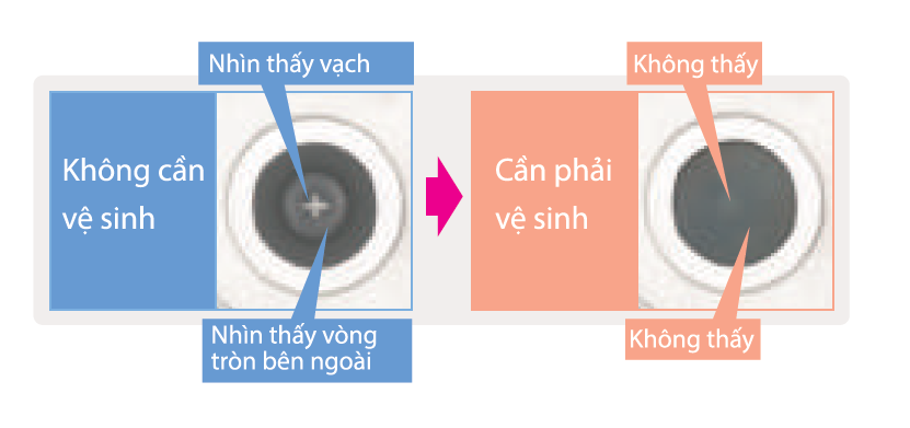 Khi máng nước xả bị dơ, có thể kiểm tra dễ dàng qua cửa sổ trong suốt này mà không phải tháo máng nước ra xem