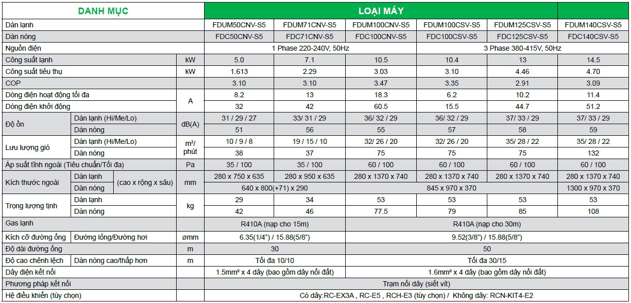 THÔNG SỐ KỸ THUẬT MÁY LẠNH GIẤU TRẦN NỐI ỐNG GIÓ NON - INVERTER MITSUBISHI HEAVY FDUM_CNV-S5/FDUM_CSV-S5