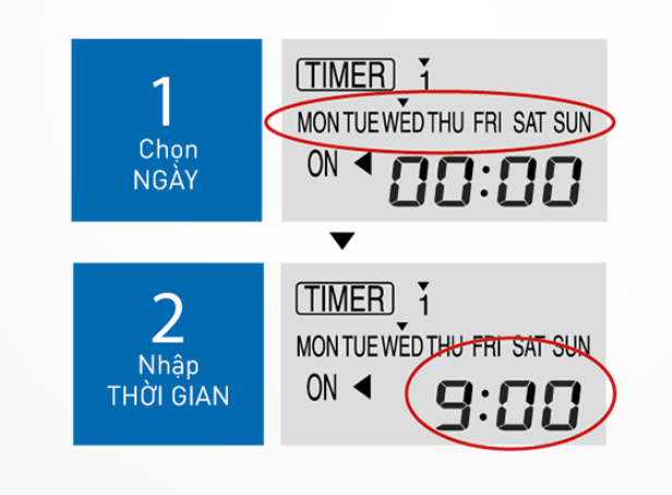 2. Có thể đặt lịch trước với : Tối đa 6 cài đặt/ngày, 42 cài đặt/ tuần