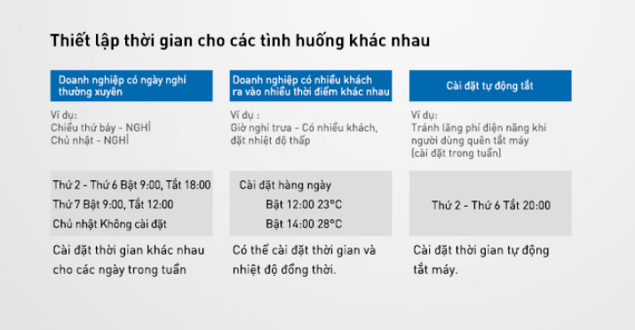 1. Có thể đặt lịch hoạt động cho mỗi ngày trong tuần