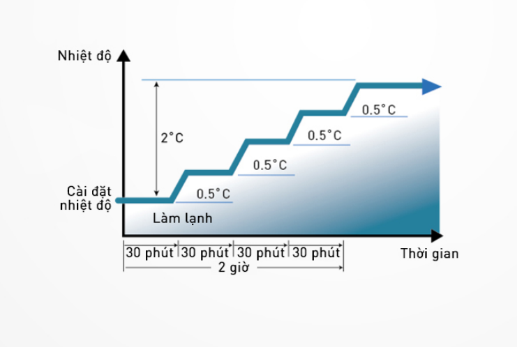 Tiết kiệm tới 20% điện năng tiêu thụ. Hệ thống xác định điêu khiển hoạt động ổn định và điều chỉnh thay đổi nhiệt độ cài đặt theo từng cấp 0.5oC để tiết kiệm điện năng tiêu thụ (tối đa là 2oC)