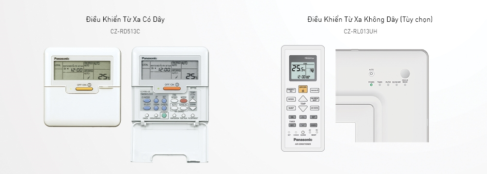 Điều khiển từ xa của Panasonic được thiết kế thân thiện, dễ dàng sử dụng, tích hợp nhiều chế độ cài đặt giúp kiểm soát hướng gió và chất lượng không khí như mong muốn. Ngoài ra người dùng có thể lựa chọn điều khiển có dây trang bị tính năng hẹn giờ tiện lợi.