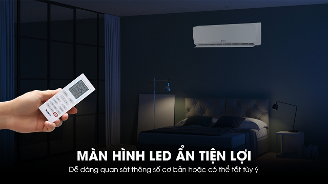 Thiết kế hiện đại với màn hình LED ẩn, bạn có thể dễ dàng quan sát những thông số cơ bản của điều hòa khi đang hoạt động. Đối với những vị khách bị khó ngủ hoặc nhạy cảm với ánh sáng vào ban đêm, chỉ cần nhấn nút LIGHT trên Remote, màn hình hiển thị sẽ tắt giúp bạn dễ dàng có giấc ngủ ngon.