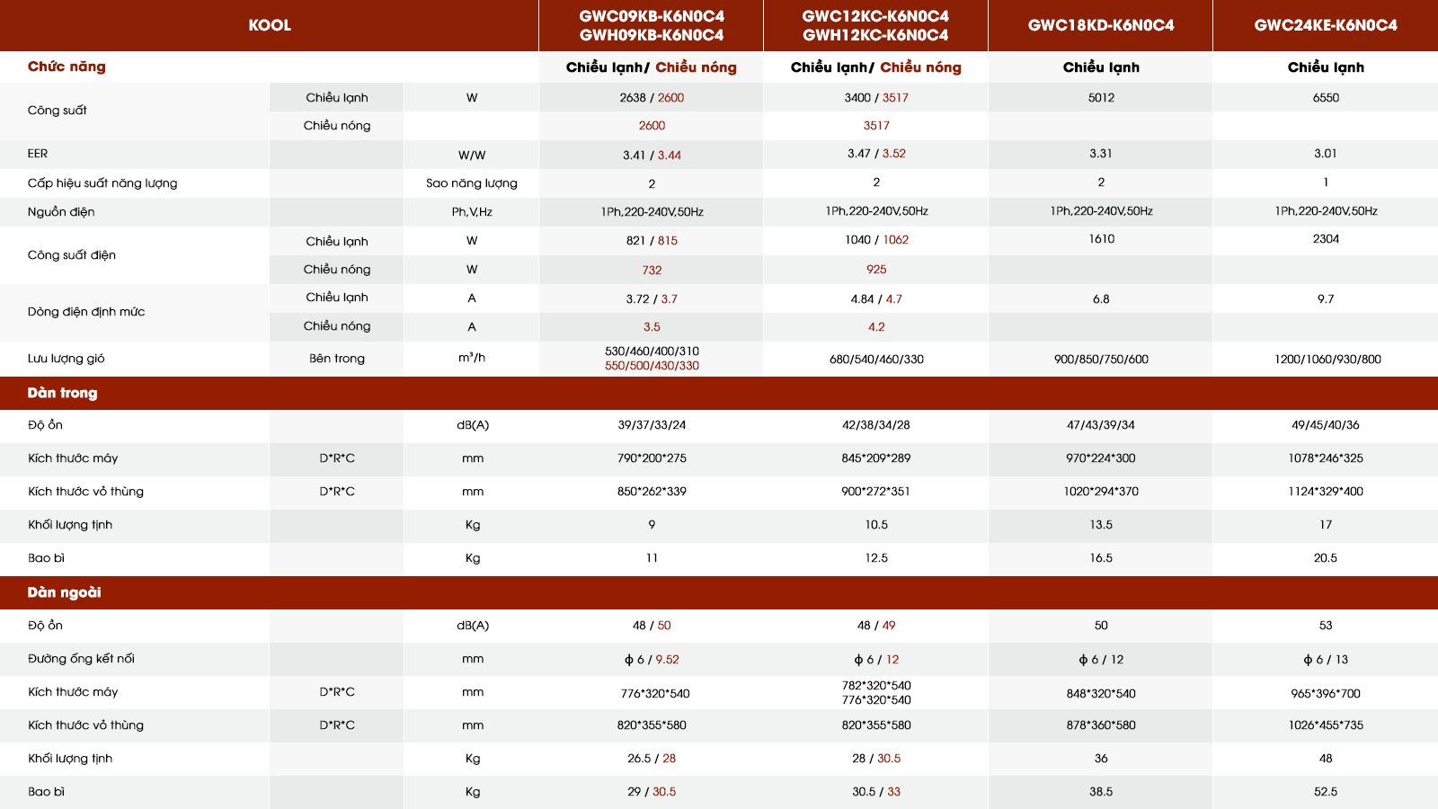 THÔNG SỐ KỸ THUẬT MÁY LẠNH TREO TƯỜNG NON INVERTER GREE GWC18KD-K6N0C4 (2.0HP)