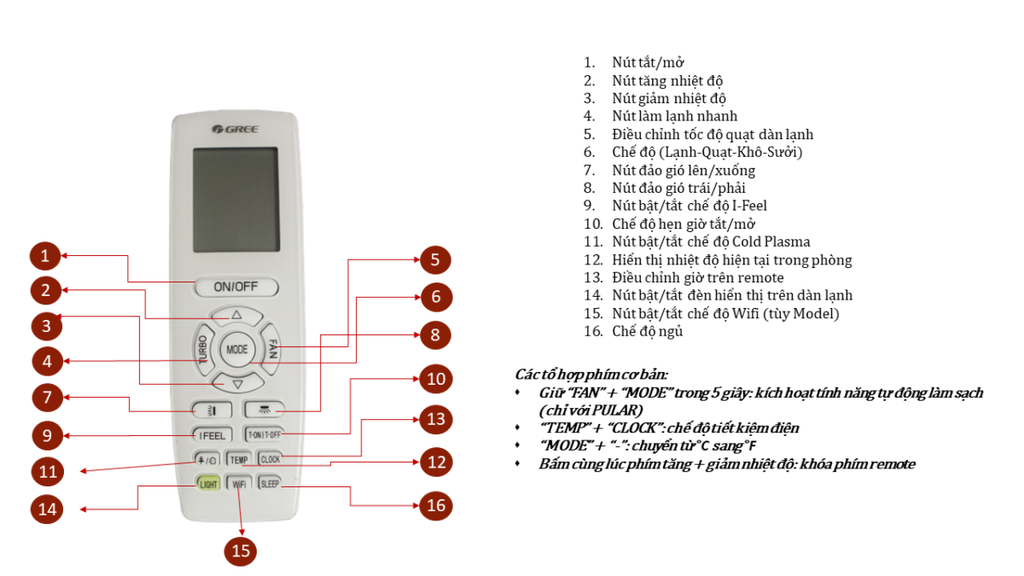 * Để kích hoạt tính năng này, người dùng chỉ cần bấm tổ hợp phím FAN + MODE trong vòng 5 giây khi điều hoà đang ở chế độ Standby (điều hoà đã tắt nhưng vẫn được kết nối với nguồn điện).