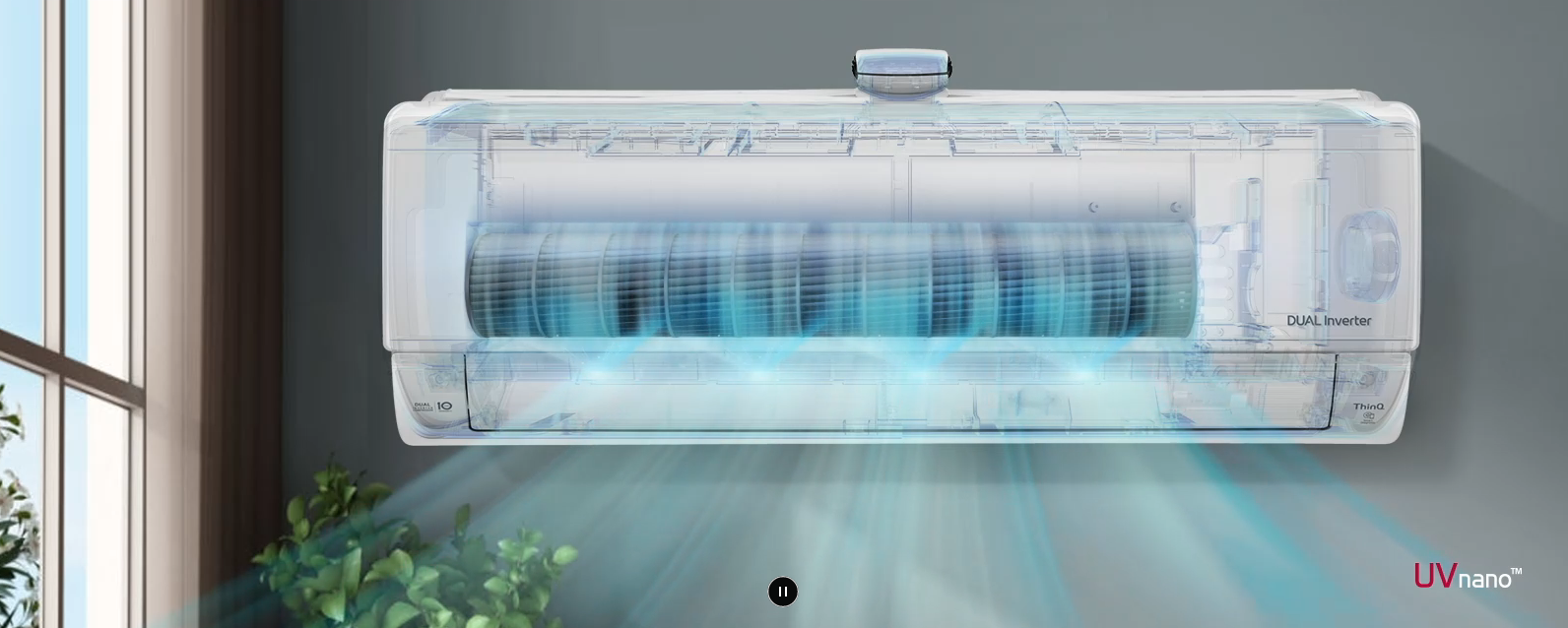 Máy điều hòa không khí LG vận hành với mức âm thanh thấp, nhờ có thiết kế quạt nghiêng độc đáo của LG và máy nén kép Dual Inverter Compressor™ giúp loại bỏ tiếng ồn không cần thiết và cho phép vận hành êm ái hơn.