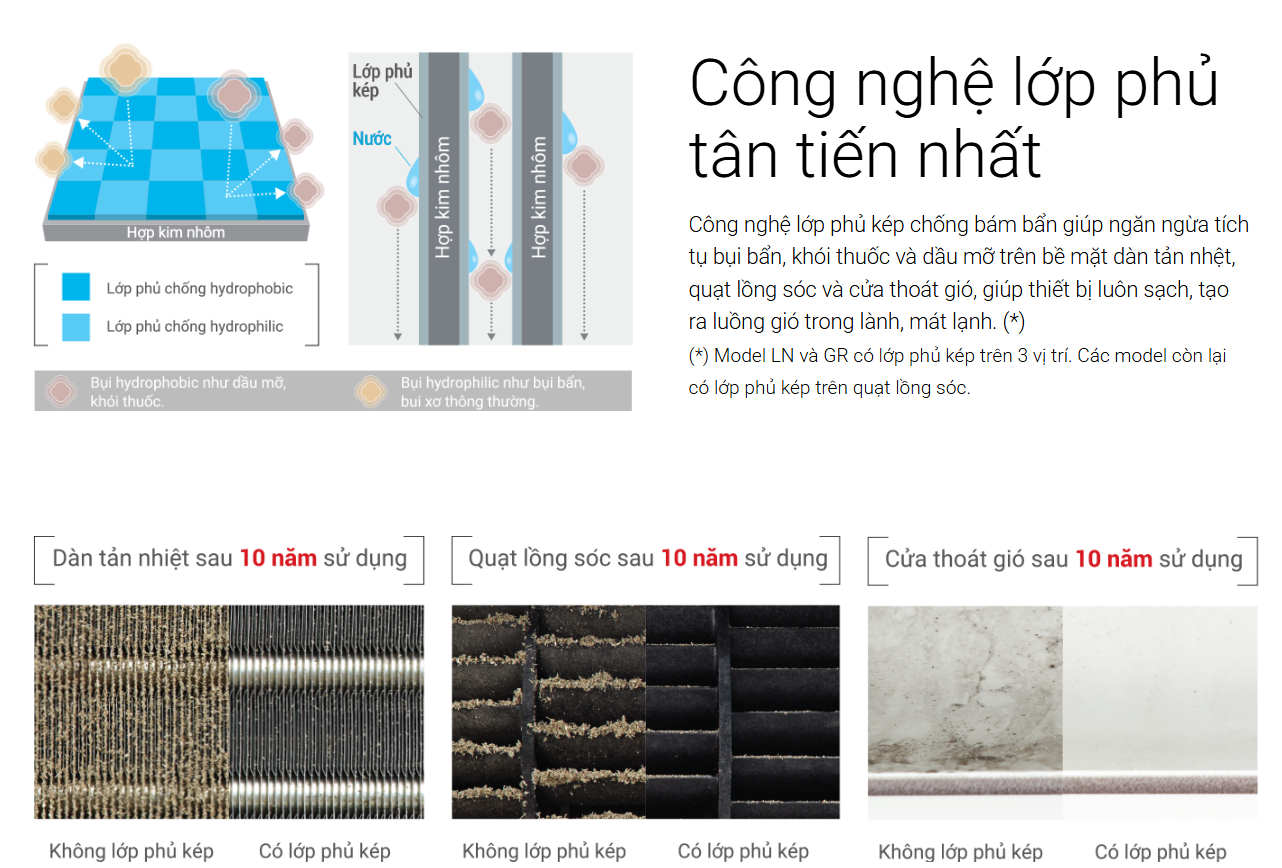 Công nghệ chống bám bẩn độc quyền của Mitsubishi Electric giúp ngăn ngừa tích tụ bụi bẩn, khói thuốc và dầu mỡ trên dàn tản nhiệt. Giữ vững sự bền bỉ sau 1 thời gian vô cùng dài.