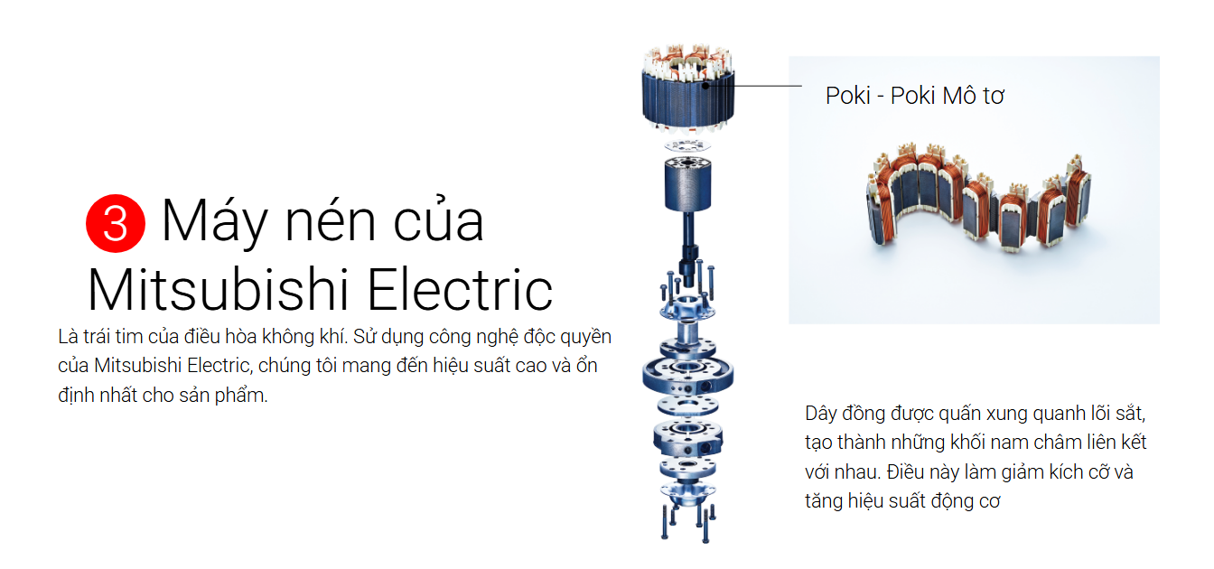 Công nghệ máy nén độc quyền của Mitsubishi Electric, đảm bảo hiệu suất cao và ổn định cho sản phẩm.