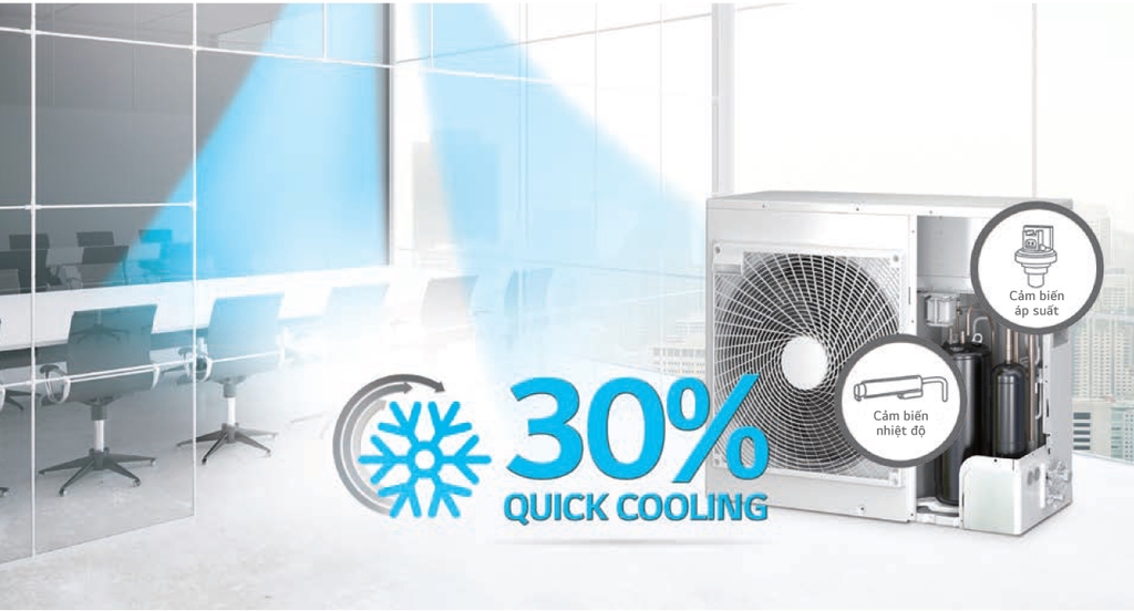 Hệ thống cảm biến thông minh giúp máy mất ít thời gian để đạt được nhiệt độ mong muốn, tốc độ làm lạnh nhanh hơn 30%, khả năng kiểm soát nhiệt độ chính xác hơn, duy trì nền nhiệt ổn định hơn
