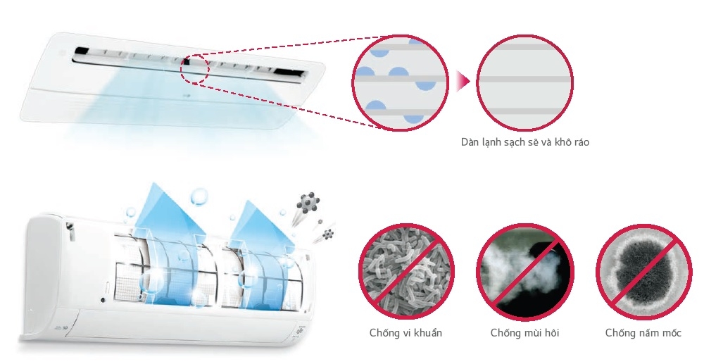 Cung cấp không khí bằng cách làm khô dàn trao đổi nhiệt, ngăn chặn vi khuẩn, chất bẩn tích tụ trong dàn lạnh.