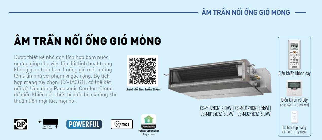 - Dàn lạnh giấu trần nối ống gió CS-MU18YD3Z (5.0kW) - 2.0HP