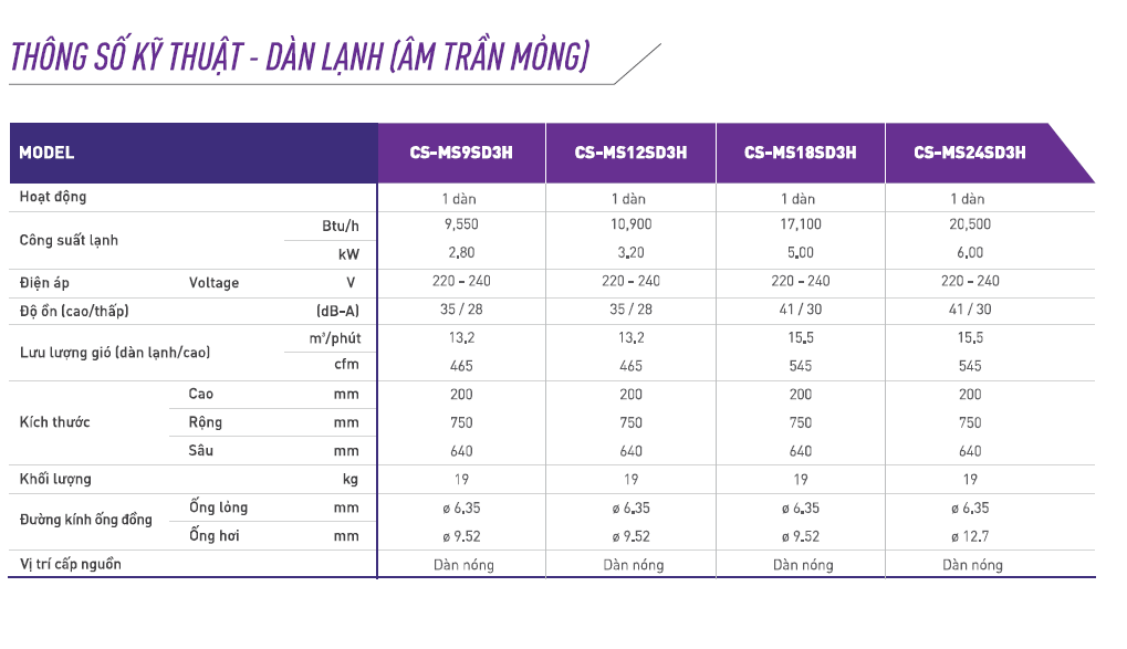 THÔNG SỐ KỸ THUẬT DÀN LẠNH GIẤU TRẦN NỐI ỐNG GIÓ MULTI INVERTER PANASONIC CS-MS12SD3H (3.2kW) - 1.5HP