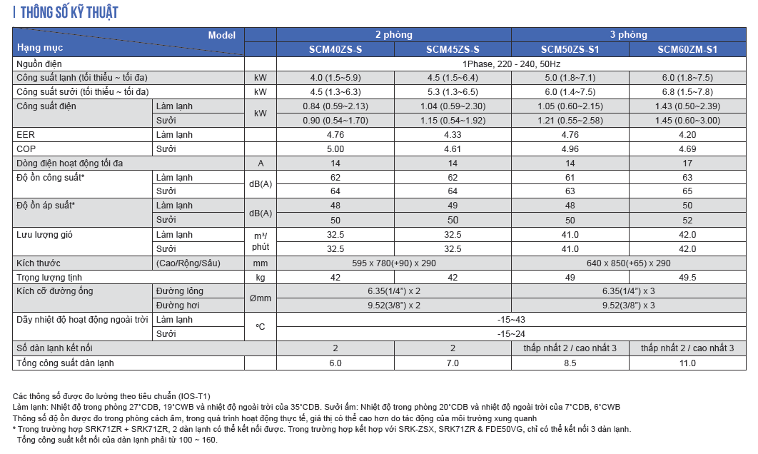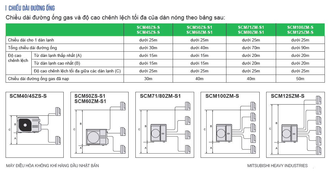 THÔNG SỐ KỸ THUẬT DÀN NÓNG MULTI SCM MITSUBISHI HEAVY INVERTER SCM_ZS-S