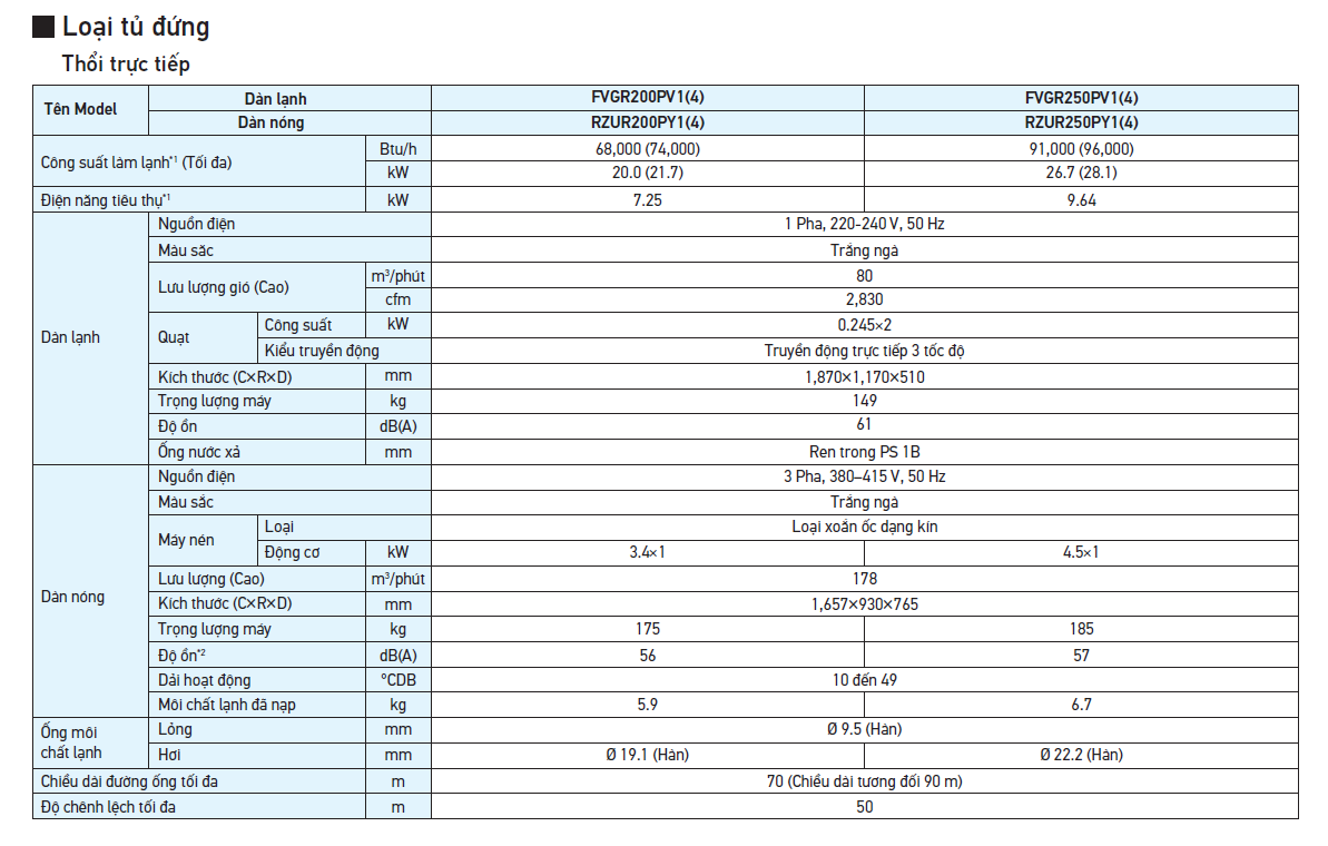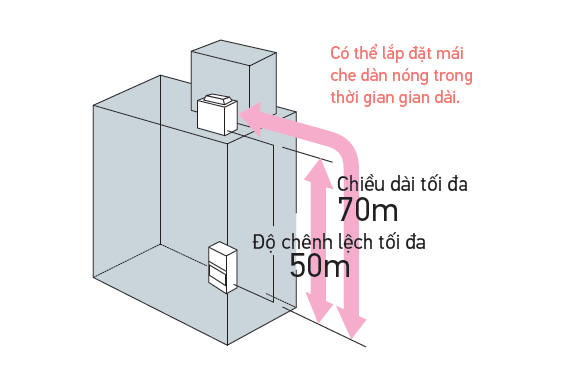 Chiều dài đường ống tối đa 70m và độ chênh lệch tối đa 50m để đáp ứng cho các công trình xây dựng quy mô vừa và lớn