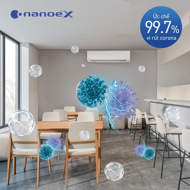 Công nghệ Nanoe™ X với các gốc hydroxyl làm ức chế hiệu quả các chất ô nhiễm, mùi hôi bám trên các bề mặt và không khí. Bộ phát Ion âm Nanoe™ X hoạt động độc lập so với máy lạnh, làm sạch không khí, khử mùi hôi, kháng khuẩn, diệt virus, ức chế 99,7% virus corona,…. đem lại không gian sạch sẽ, thoải mái 24/7 cho gia đình.