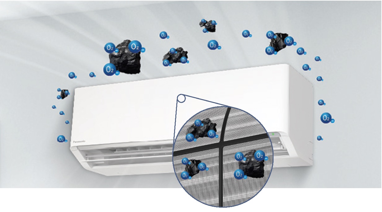 Bộ phát I-on âm Nanoe-G giải phóng các ion-âm thu giữ những hạt bụi có kích thước rất nhỏ và đưa chúng về bộ lọc. Kết hợp với NanoeX vừa khử khuẩn, vừa tẩy sạch bụi bẩn có trong không khí. Mát sạch sảng khoái với máy lạnh Panasonic cao cấp.
