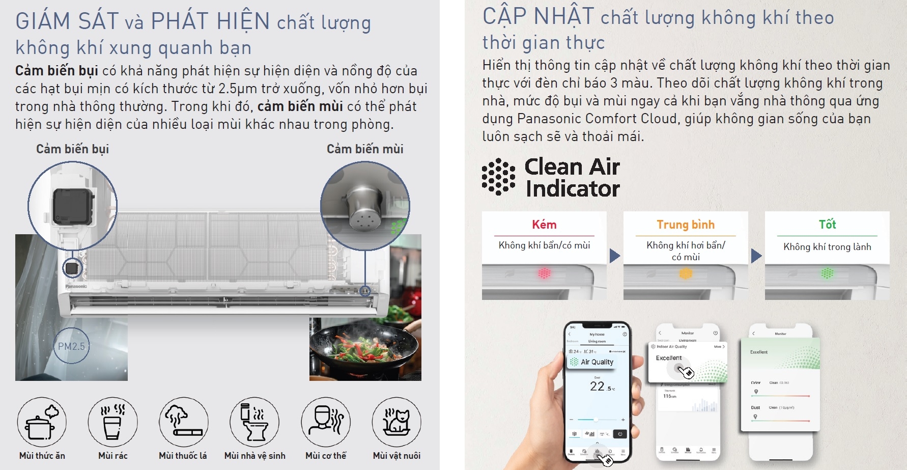 Cải tiến khả năng tiết kiệm điện khi tích hợp máy nén biến tần thế hệ mới và trí tuệ nhân tạo A.I ECO. Máy lạnh Panasonic vừa giữ được hiệu suất làm lạnh mạnh mẽ, hoạt động không tiếng ồn, lượng tiêu thụ điện năng giảm đáng kể.